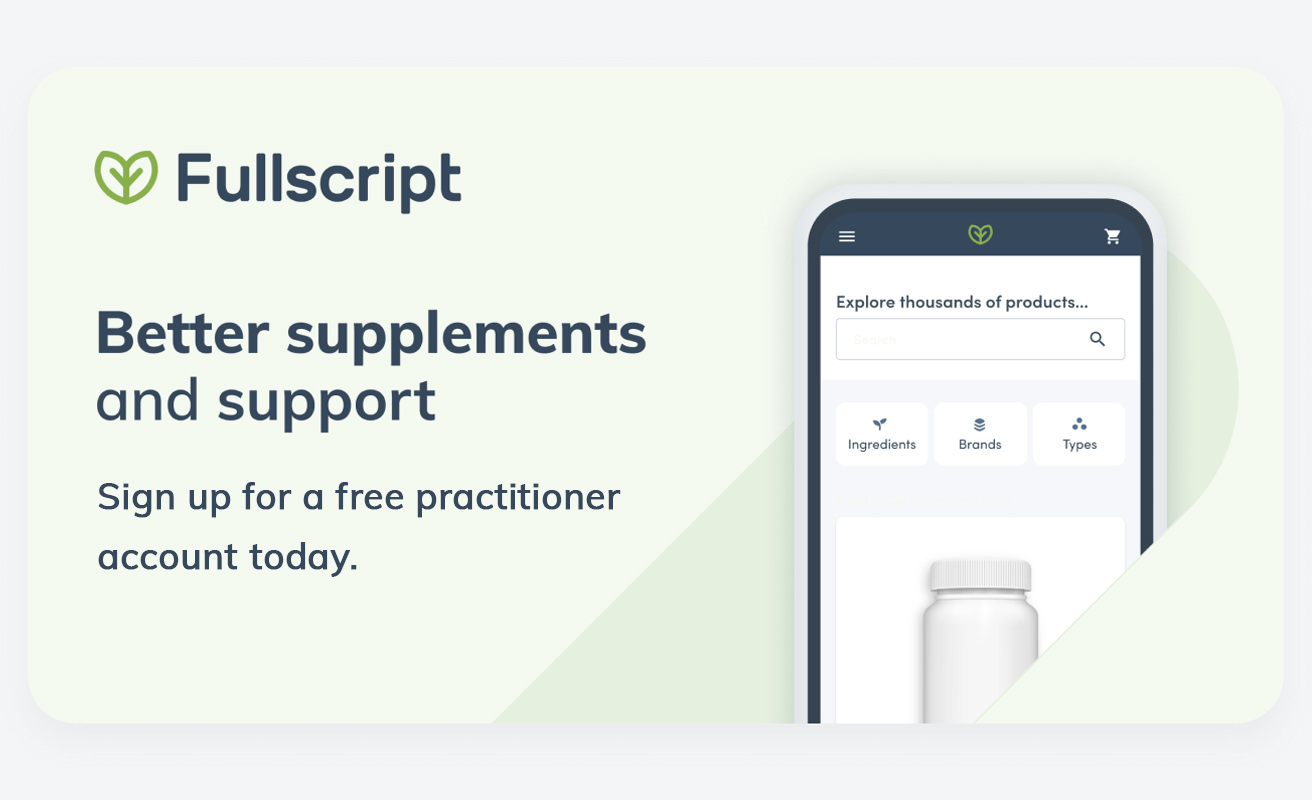 Fullscript is the leading online platform for practitioners to manage and dispense healthcare’s best supplements — from their clinic or directly to their patients' doors.