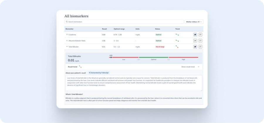 - Visualize lab results to quickly spot suboptimal or out-of-range biomarkers